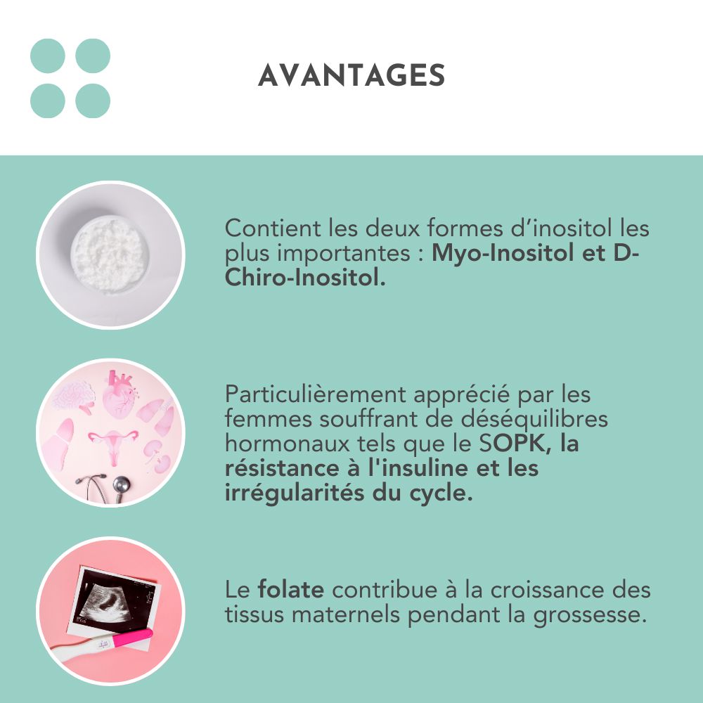✔️ Particulièrement appréciée par les femmes souffrant de SOPK, ayant un désir d’enfant ou présentant des irrégularités du cycle menstruel